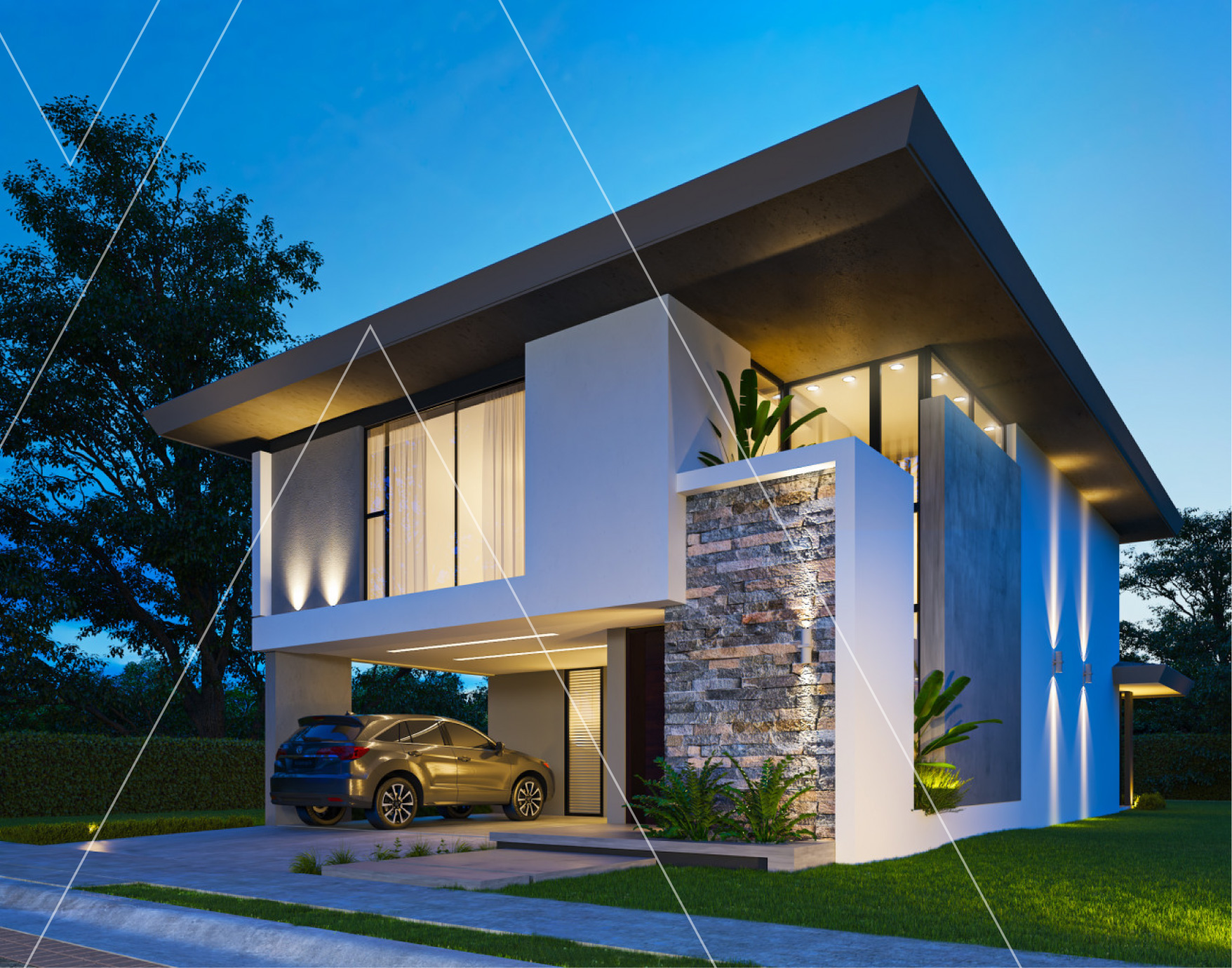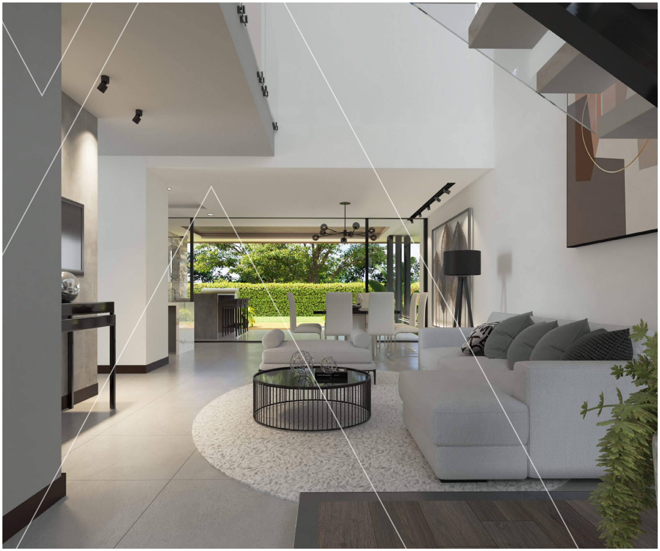 Construida dentro de un conjunto condominal donde su colindancia posterior posee belleza arbórea con cortezas amarillas y robles sabana, esta casa abre su área social a esta zona y aprovecha ese punto focal como área principal para su esparcimiento.
