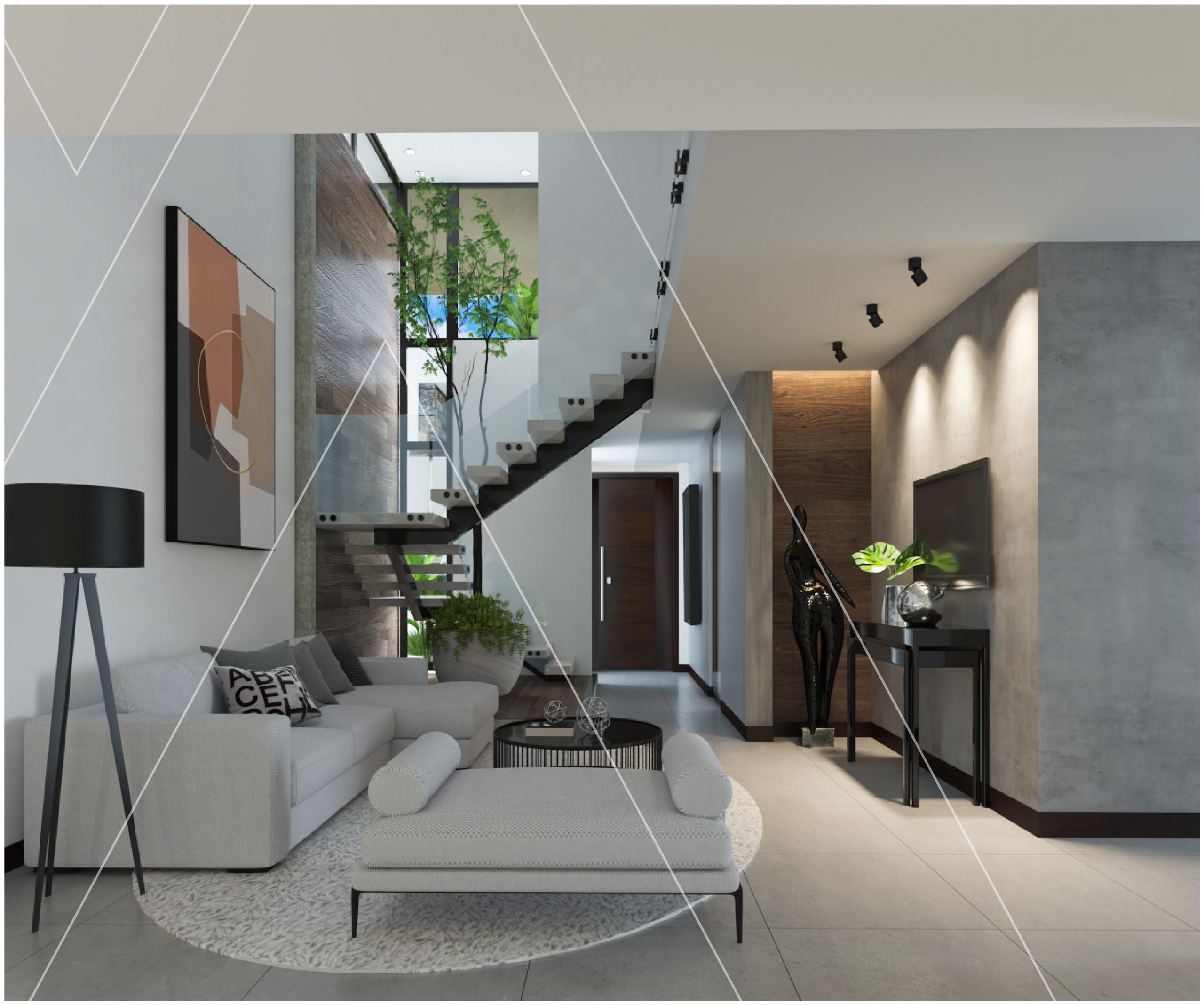 Proyecto de gran tamaño y cantidad de aposentos limitados por dimensión de terreno y regulaciones condominales. Se planteó la integración adecuada para lograr buena sensación espacial y manejo de la luz natural, con lo que el tamaño queda ajustado a su perfección.